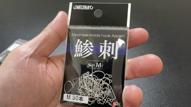 今回はミザールの最強ジグヘッドにも採用の「鯵刺フック」を使用します。