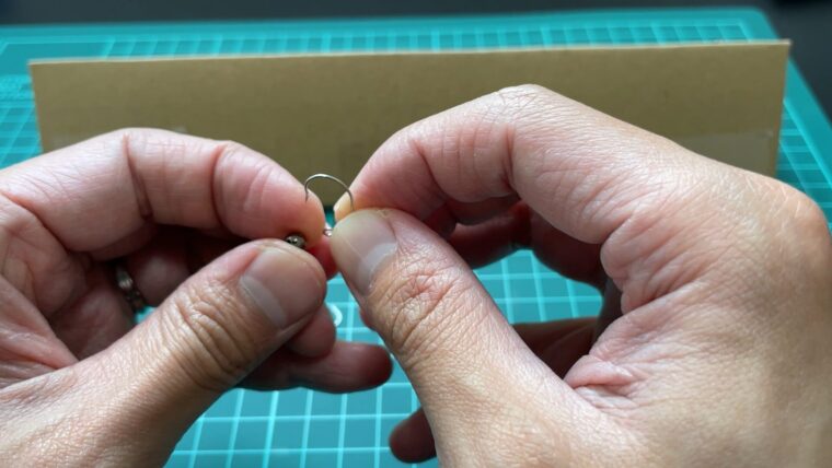 1.フックにタングステンビーズを通す