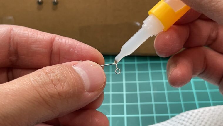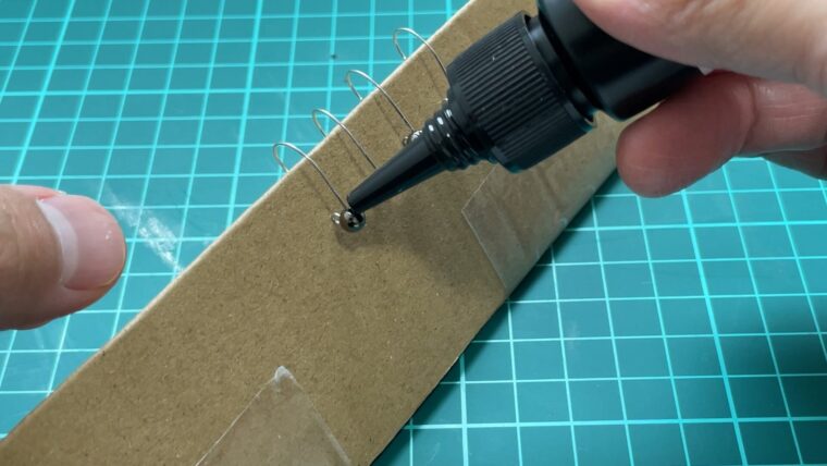 フックのL字部分に瞬間接着剤を少量塗りましょう。