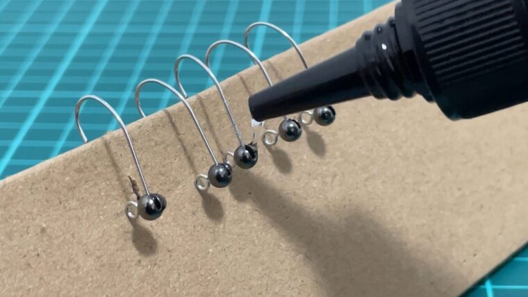 瞬間接着剤はタングステンビーズをフックに仮固定する際に使います。