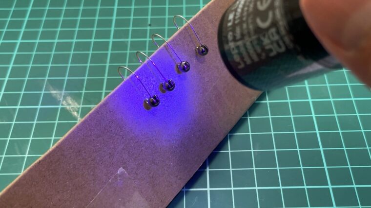 UVレジンで作ったタングステンジグヘッドは、ライターであぶって再利用できます。
