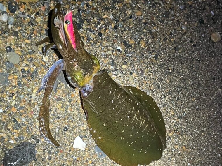 狙えるアオリイカのサイズは大きくても胴長20cmくらいまででしょう。